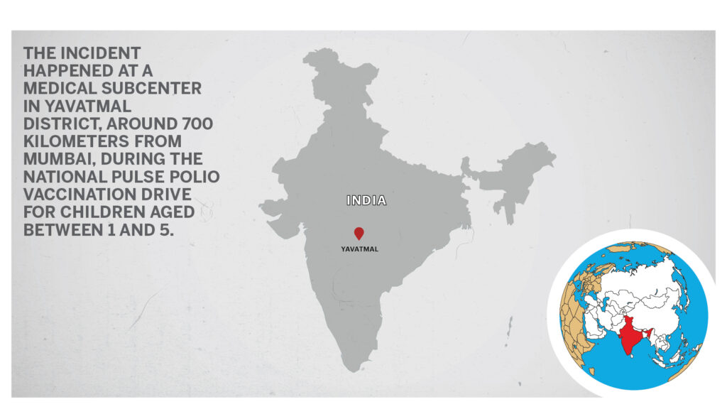 The incident happened at a medical subcenter, Bhambora Primary Health Care, in Yavatmal district, around 700 kilometers from the state capital, Mumbai, during the National Pulse Polio vaccination drive for children aged between 1 and 5.