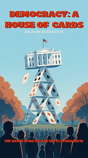 Dr. John Johnson II in his book , already endorsed to become a “Best Seller,” is entitled, “DEMOCRACY: A HOUSE OF CARDS.” He exposes the fragility of our democratic systems in a divided America. He then delivers the message no one wants to hear, white supremacy isn’t democracy’s tragic flaw, it’s the weapon being used to kill it. This isn’t just another political autopsy; it’s a battle plan. He prescribes the “Nuclear Black Out/Boycott.” A strategy that hits power where it hurts: the wallet. Destroyers of democracy understand only one language, money. The perpetrators are named and the stakes are clear. The House of Cards is collapsing!