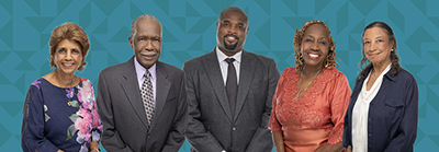 L to R: wAnnie Ruth Nelson, Herman Allen, DDS, Henri W. Crockett, Patricia E. Williams and Shirley Richardson.