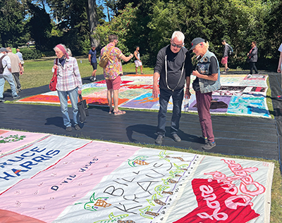 More than 3,000 Quilt panels were displayed in Golden Gate Park on June 11 & 12, 2022 – each 3’ x 6’ panel the size of a grave – remembering a life lost to AIDS. The Quilt’s presence – the largest display in more than a decade – demonstrated its unique power to comfort, heal and be used as a catalyst for action today in the ongoing struggle for health and social justice.