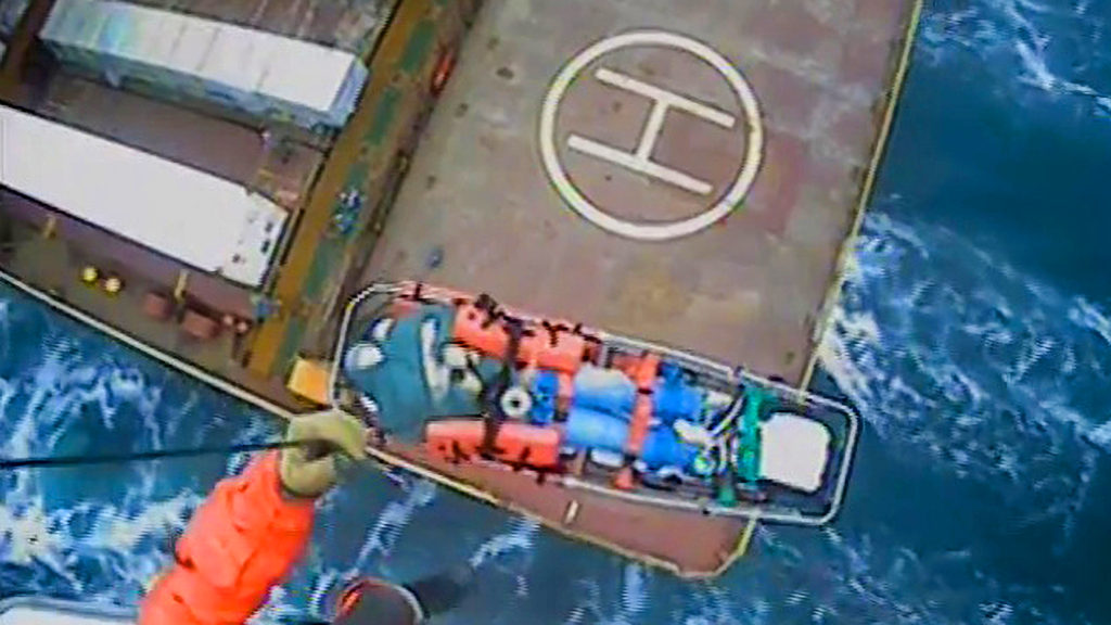 STRAIT OF JUAN DA FUCA — The United States Coast Guard carried out an emergency evacuation of a sick woman. She was airlifted from an aground vessel between Canada and the United States, on Jan. 30