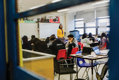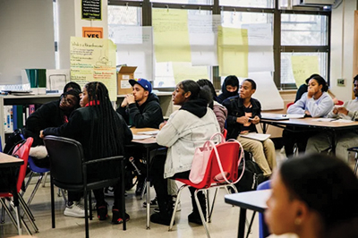 During a recent class, Brooklyn Prep Assistant Principal Shannah Henderson, who teaches the course, had students work in small groups to analyze the poem “Heritage” by Countee Cullen. She said her role is primarily to remind the students “about the different perspectives, and the different voices” and to manage the different cultural expectations of the children, in keeping with the course design.