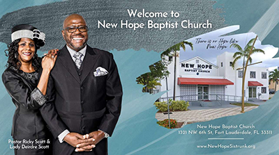 In June of 2007, the church came together and called Reverend Ricky Scott to become the 13th pastor of the New Hope Missionary Baptist Church. Pastor Scott is an energetic young man with a vision from God, who plans to lead his people to higher heights in the Lord. The church’s first project is to update the current sound system and produce CD’S, DVD’S and Videos.