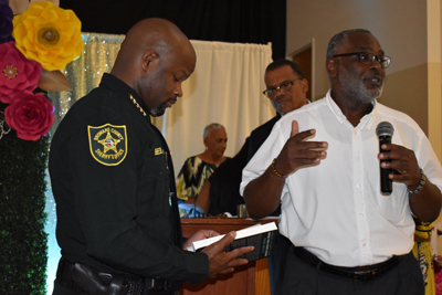 Broward County Sheriff Gregory Tony (event keynote speaker) with Westside Gazette writer Perry Busby. (Photo credit: Brielle Henry)