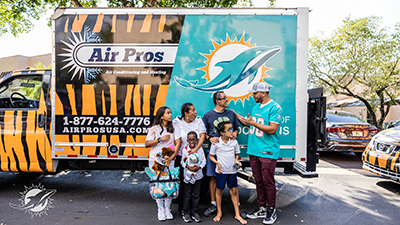 “We are elated to be partnering with Air Pros for the third year in a row as we continue to support members of our South Florida community,” said Miami Dolphins Senior Director of Community Relations & Youth Programs RaShauna Hamilton. “Thanks to our Football UNITES™ community partners Wounded Warrior Project, His House Children’s Home and the NMB-PAL, we were able to identify and provide families in need with a new air conditioning unit to keep them cool through the Florida heat.”