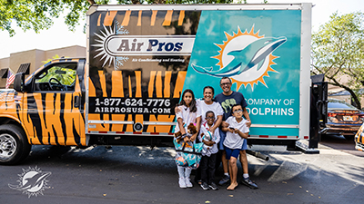 You are at:Home » Air Pros USA Teams Up with Miami Dolphins Football UNITES™ to Give Away Free A/C Units to a Military Family, a Foster Family and Mother in Need