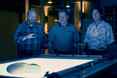 Damon plays his everyman card with Sonny. Likable, pudgy, earnest and a progressive thinker. Affleck, as Knight, who puts his big feet on a desk emphasizing his earthy spiritual self. It’s a caricature of a benevolent but narcissistic CEO. Tucker is so affable you wonder why he isn’t in more films, while Messina’s take on the cutthroat agent is hilarious. He’s a liar, protector and self-absorbed salesman. The sports/jock trash-talking banter between him and Damon’s character is hysterical.