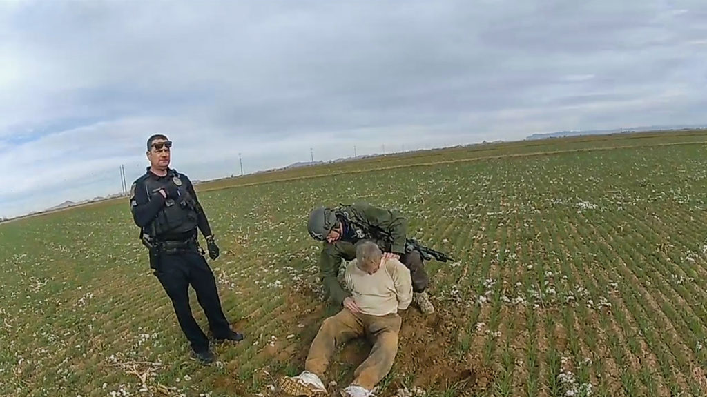 Body-cam footage released by police on the day of the arrest shows Coolidge officers and U.S. Marshals chasing Harmon and Charpiot in a cotton field and ordering them to surrender.