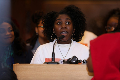 Diarra Smith, 17, a member of S.O.U.L. Sisters, discussed her experience being admitted under the Baker Act at age 16 during a press conference held for Black Girls Day in the fourth floor Capitol rotunda.