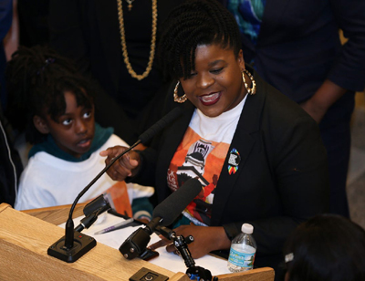 Rep. Kamia Brown speaks during a press conference held for Black Girls Day at the Capitol.