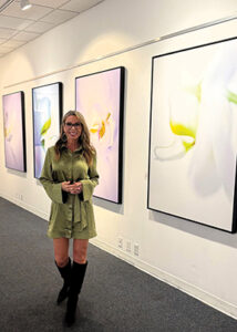 Stacy Daugherty (Artist) in front of her photography exhibit, “Holding Space,” in the member’s gallery