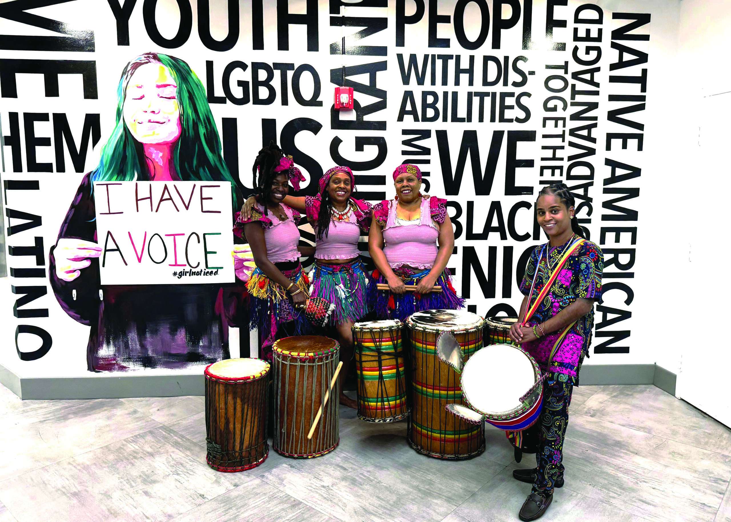 Musicians and dancers Dayjah Gittens, Lanecia Radcliff, Sheila McCray and Nany G. who participated in the exhibit.