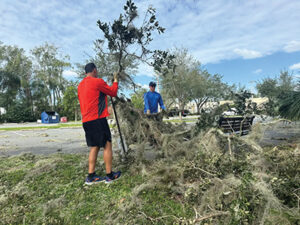 The leadership team at Premier Community Healthcare clears debris from their family clinic in Dade City after Hurricane Milton In the aftermath of two deadly hurricanes, community health centers rushed to reopen their doors to meet urgent medical and mental health needs. ( Photo courtesy of Premier Community Healthcare)