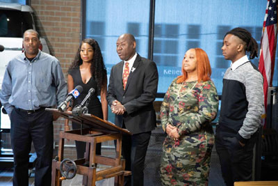 (From left to right) Brent Maffet, Attorney Sue Ann Robinson, Attorney Ben Crump, Angela Cross and Cyrus Nance.
