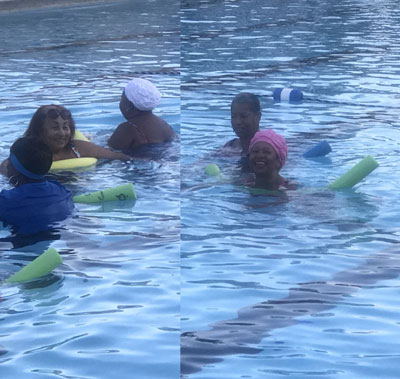 Everyone can join in the fun; No one is left out. Start exercising at a low intensity (especially if you’ve been mostly sedentary), and progress gradually. Ms. Evelyn Smith, who was extremely active in the community with a numerous organizations stated that nothing would stop her from serving. Do to complications from health issue, Ms. Smith has slowed down a little but not enough to keep her away from the group. When she can, her son still brings her out to get a dip in the pool even though she is in a wheelchair.