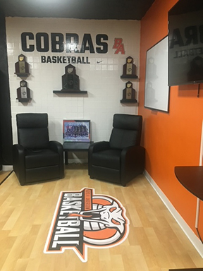 The new locker room did not disappoint. It displayed state-of-the-arts LED lighting, 15 brand new lockers, oakwood floor, a flatscreen TV, a white board, reclining massage chairs, and a trophy wall to show off state championships trophies from 1991 to present. Every player has a locker with his name and number on it along with its sponsor’s information.