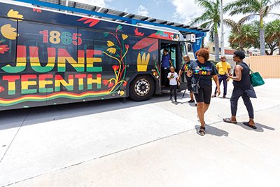BCT’s deep community engagement was evident during the recent Juneteenth celebration held at the Lauderhill Transit Center (LTC). A unique exhibition transformed a bus into a moving museum adorned with vibrant Juneteenth imagery. This immersive experience educated attendees about the historical significance of Juneteenth, the day marking the emancipation of enslaved African Americans.