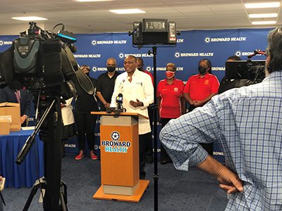 State Representative Marie Paule Woodson, also of Haitian descent, thanked Broward Health for the donation, saying, “Actions say more than words. Thank you for coming to our help at this time.”