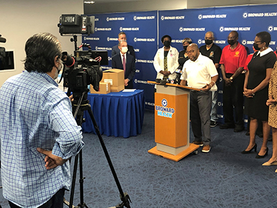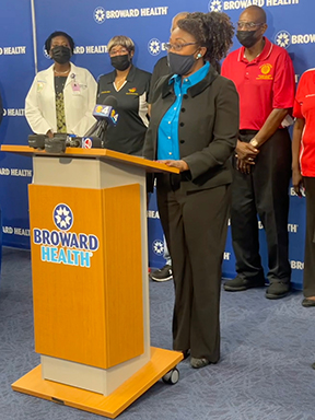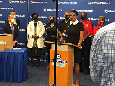 State Representative Marie Paule Woodson, also of Haitian descent, thanked Broward Health for the donation, saying, “Actions say more than words. Thank you for coming to our help at this time.”