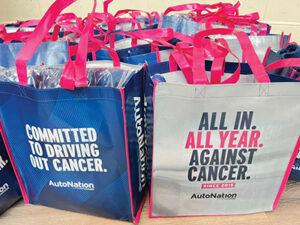 AutoNation donated 25 “Totes for Hope” for adult cancer patients and 25 totes for pediatric patients. Each tote included a blanket, water bottle, socks, game cards, coloring books and a Rubik’s Cube.