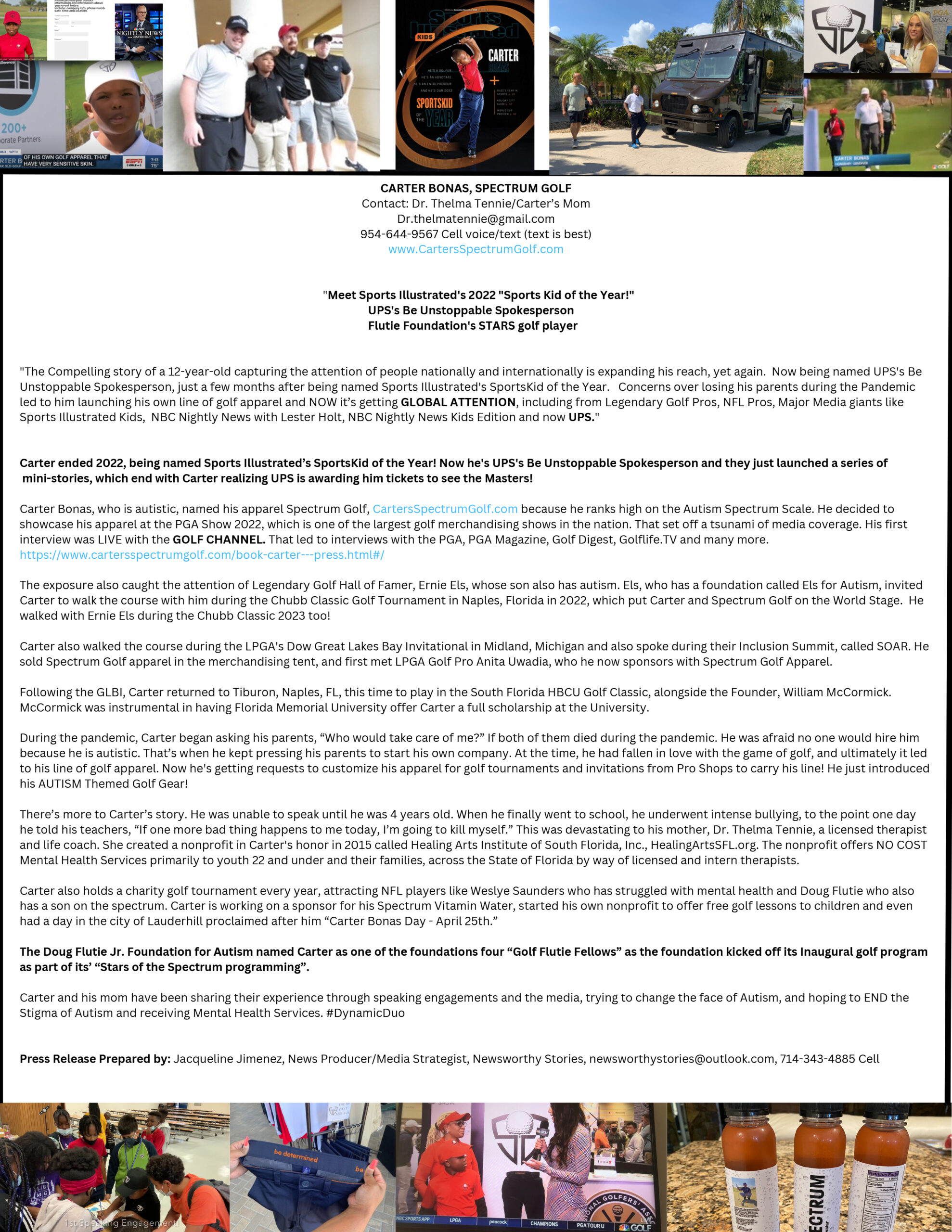 Carter Bonas, Spectrum Golf Carma Henry 3 years ago Carter Bonas 12-Year-old Carter Bonas of Spectrum Golf heading Augusta, Wednesday April 5, 2023 to attend the Masters.