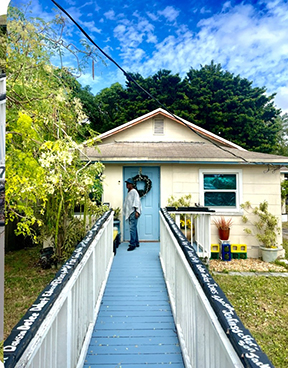Cynthia began by assuring us that this powerful, important and inspiring depiction was unplanned. However, she sheepishly admitted, “ If you want to make God laugh, tell Him your plans.” Cynthia said that she moved to the Virgin Islands, traveled extensively, started a very successful singing telegram business, was thriving as an entertainer, a jazz singer, expanded by assuming a clown business left vacant after an individual’s departure because of COVID and was experiencing a great social life with all of its trappings. A Cat 5 Hurricane impacting the island couldn’t compel her to leave. Successful, joyful and content, leaving wasn’t even an afterthought, but God had other plans for her, though she didn’t heed them immediately. After spending seven years in St. Thomas, she moved back home and just out of curiosity began questioning her father and his side of the family about its Bahamian roots. As an only child who didn’t know his father, Cynthia’s dad would often travel with siblings to the Bahamas where she gained invaluable knowledge. Much of what she learned from him pointed back to early settlers in Carver Ranches, piquing her curiosity. The very building that houses the Bowles-Strachan Museum was one of four display homes that her grandmother, Mrs. Evelyn Bowles, purchased. Cynthia’s inquisitive mind and yearning to learn more about her family’s history became entwined with Carver Ranches. One final excursion to Atlanta to pursue personal and professional goals failed miserably, so she returned home humbled, depressed and broke. Perhaps now she was prepared to follow God’s plan for her. Still curious, she found a willing subject in Mrs. Blossie Hale, a robust, staunch and classy woman who had lost much of her physical prowess after being stricken with a serious illness. Cynthia arranged the interview and was shocked to see the drastic physical change and decline in Mrs. Hale, who lay peacefully at home in a hospital bed, and whom Cynthia remembers as a reader or prophetess visited by many in her darkly lit room, which proved foreboding and frightening for impressionable young people.