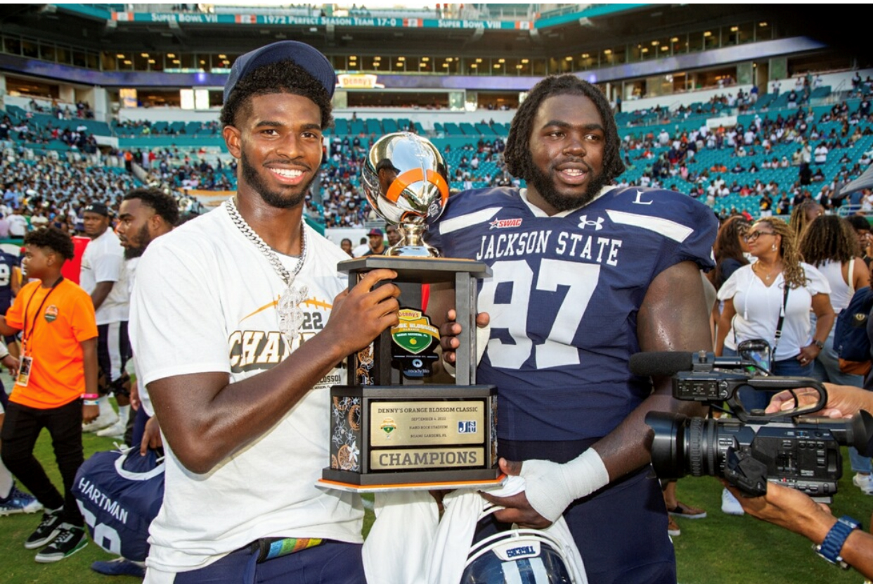 During the Friday press conference at Hard Rock Stadium, Coach Deion “Prime Time” Sanders and his players, Shedeur Sanders and Devanta  Davis, each spoke about dominating the Orange Blossom Classic  against FAMU in every phase of the game, not in a haughty, braggadocios way but by exuding supreme confidence in the talent, preparation and character developed by the JSU Tigers throughout  fall camp. However, based on the Rattler’s performance against Power 5 opponent  North Carolina of ACC affiliation, in spite of the compliance and ineligible player issues, and last year’s closely fought battle (JSU 7- FAMU 6), the odds of a dominant performance by either team seemed completely far fetched. Surely, the talent gap could not have widened that much in a year. Boy, was I mistaken, misled or misinformed, and I’ll bet you 10-1 odds that I was not alone in my assessment.