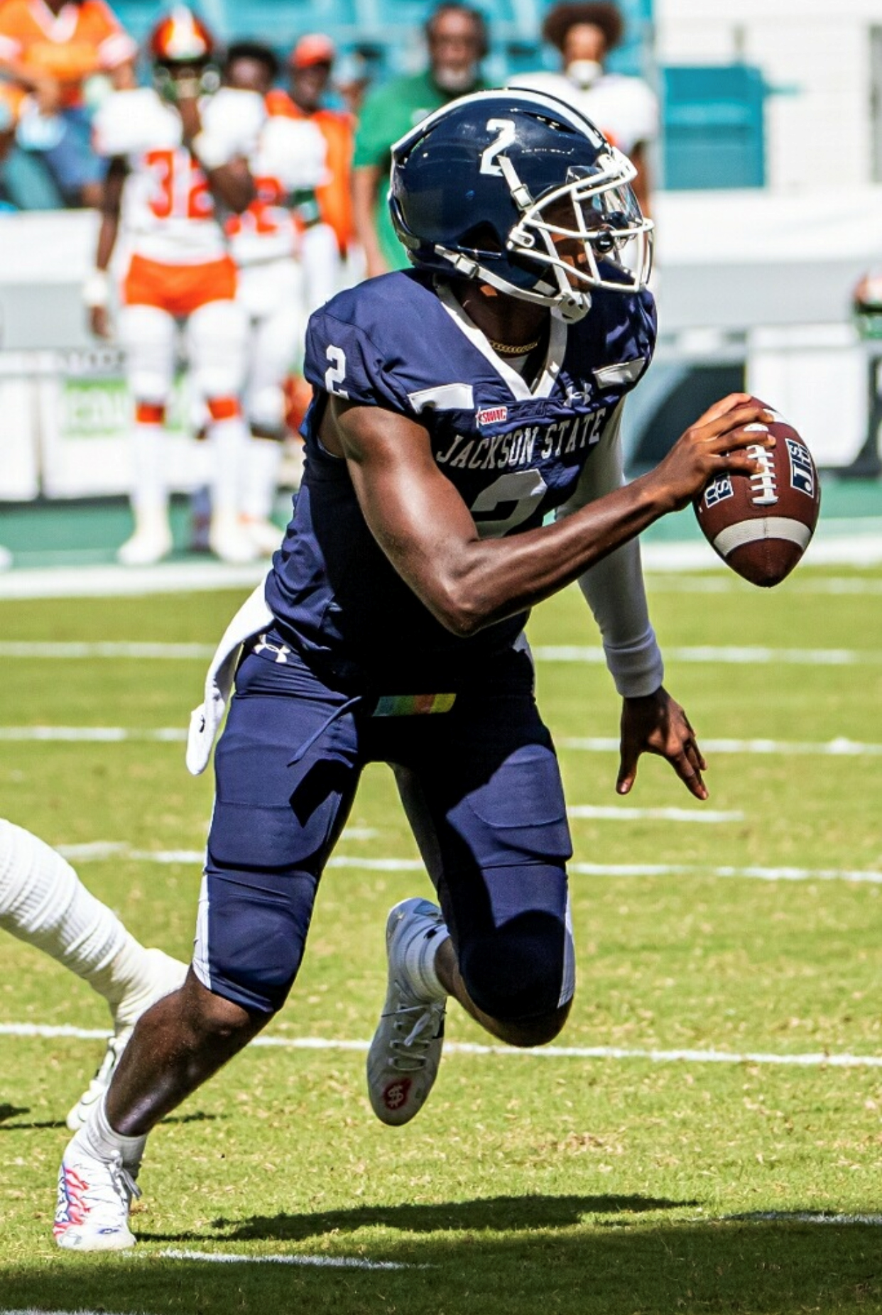 FAMU finally scored  a field goal with 58 seconds remaining in the first half. It’s conceivable that a touchdown in that moment may have sparked a 2nd half comeback as optimism would suggest. Of course, that’s not what happened. JSU received the second half kickoff and scored on Sanders’ fourth touchdown pass giving the Tigers a commanding 31-3 advantage. FAMU’s futility continued in the second half as an INT for a touchdown, a  fumble recovery for another score and a blocked punt resulting in still another score sealed the lopsided contest.