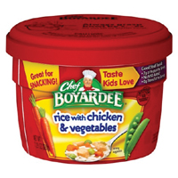 - 7.5 oz. canned microwavable bowls of “Chef BOYARDEE rice with chicken & vegetables” on the label, and a package code of 210090151050045L, and ‘BEST BY’ date of Jul082020 on the bottom of the bowl.