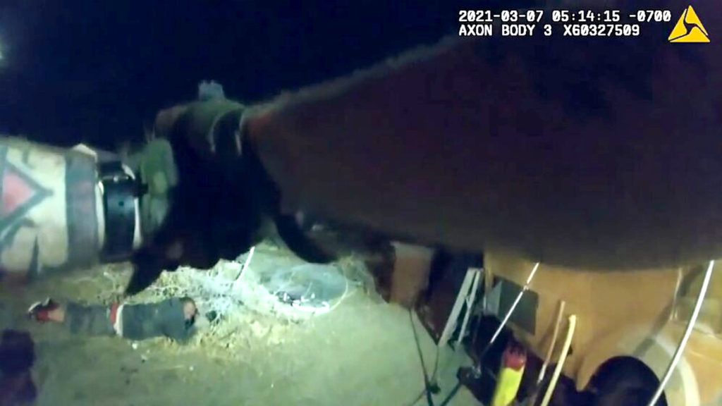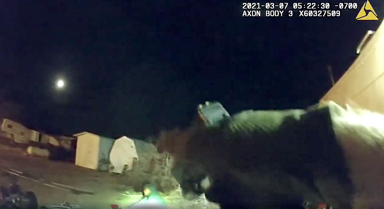 Bridgman’s bodycam footage lasts another nine minutes, during which he unsuccessfully tries to get Ahuna to handcuff himself while holding him at gunshot point. As per the release, Ahuna was apprehended using a Taser.