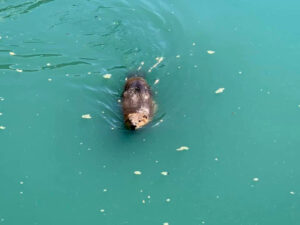 The beaver was spotted on a blue float in a pond behind the Central Market, and officers first tried to catch it in a net, according to the police.
