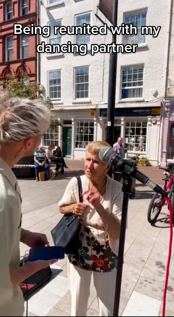 “Then, all of a sudden, I was busking Monday, [June 27] she comes over, starts dancing along, and someone just happened to film it.