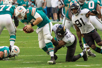 After their first quarter touchdown, the offense could not get back on the board. Tannehill completed 15 of 22 Passes (68%) for 146 yards with one touchdown and one interception. The Jaguars defense was also able to get pressure on him, sacking him 3 times and forcing their way into the backfield.