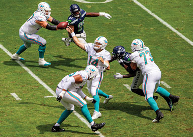 starting quarterback and his effort was average, not good but not bad either. Overall, he was 29 of 45 with 315 passing yards and 2 interceptions with one coming late in the game. Although he didn’t have a passing touchdown he had a rushing touchdown in the fourth quarter. On the flip side Russell Wilson had an excellent game passing for 360 yards going 24 of 34 with 2 touchdowns with 1 interception. The Dolphins defense helped to keep the game close, while the offense couldn’t score in the red zone. They were only down 17 to 9 at halftime; however, the Seahawks are too good of a team to not be able to convert in the red zone. Ryan Fitzpatrick offered his thoughts on their red zone performance. “I thought that was the story of the day, being able to move the ball effectively and not being able to do anything in the red zone. And whether it was a penalty or poor execution or just a bad read by me, it just seemed like every time we got down there, something popped up. And red zone execution really falls on the quarterback. And, so, for me, I walked out of this game feeling terrible in that I felt like there was a lot of guys on our team that played well enough to win and I, unfortunately, was not one of them. And when that happens and your quarterback doesn’t play up to his ability, then you’re not going to win a whole lot of games in this league.”