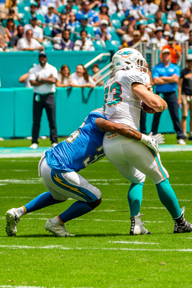 The first half started off as a competitive battle, with the Chargers up 17 to 10. Dolphins had a chance to cut the lead to four by halftime, but kicker Jason Sanders missed the field goal. When the third quarter started, it was a different game. Phillip Rivers was able to pass for 310 yards, 2 touchdowns, and no interceptions. His O-line allowed him to stand in the pocket and make key throws while still taking some hits. Conversely, the