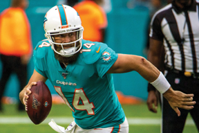 Buffalo came down to face Miami for their second match-up this season, and both were wins for the Bills. Ryan Fitzpatrick was under center for both games, throwing for more passing yards this game but had no touchdowns or interceptions. The Dolphins were counting on Fitzmagic to produce some touchdown passes but it didn’t happen. He gained passing yards, but yards don’t put points on the board. For the game Fitzpatrick was 32 of 45 for 323 yards. He was also sacked 7 times. Josh Allen had a good game for Buffalo, not only was he 21 of 33 for 256 yards and 3 touchdowns but he also had 56 rushing yards. His favorite target was John Brown who had a big game against the Dolphins defense with 137 receiving yards on 9 receptions and two touchdowns. Head Coach Brian Flores has his thoughts on the game. “We’ve got to do a better job protecting the quarterback, getting the ball out quicker. We just didn’t play well; but it wasn’t just them. We didn’t play well collectively as a team all the way across the board. It starts with me. We’ve got to coach it better, got to play better – fundamentals, technique, communication, all the way across the board – we’ve got to do it all better.”