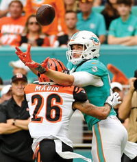 The Dolphins run game was better in this game, be-tween three running backs they rushed for a total of 78 yards, while Cincinnati’s three running backs rushed for a total of 59 yards. The passing game worked well for both teams, both Ryan Fitzpatrick and Andy Dalton threw a total of 108 times. Fitzpatrick was 31 of 52 for 419 yards, four touchdowns and an interception while also being sacked twice, while Dalton was 33 of 56 for 396 yards and four touchdowns. Center Daniel Kilgore liked the way their quarterback played Sunday. “It’s just ex-citing every week because he plays with so much joy and you can just tell he loves the game,” he says. “For him to be as old as he is and still going out and running around making throws and making calls and doing things that normal people can’t do, it’s pretty exciting and I love to play for him. He loves his teammates, he loves the staff and he is an awesome leader. He is probably top five for me as far as teammates.”