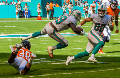 It started to look like it was going to be a low scoring defensive battle with the Dolphins leading 7 to nothing at halftime. In the third quarter the Bears exploded offensively by driving down the field, scoring 21 points and adding 7 more in the fourth quarter. What was most impressive was that the Dolphins found a way to
