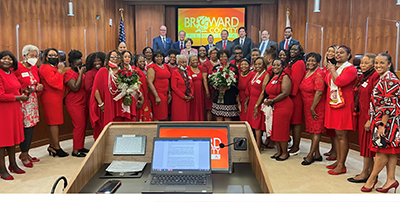 Bertha Watson Henry, the longest sitting County Administrator in the history of Broward County, has served on her last commission meeting as her Delta Sigma Theta, Inc. sorority sisters came out and painted the commission chamber red. A cross section of the community showed up for a grand send off. Friends, coworkers, dignitaries and family members expressed their love and support through gifts and well wishes with laughter and tears for Mrs. Henry in her last Broward