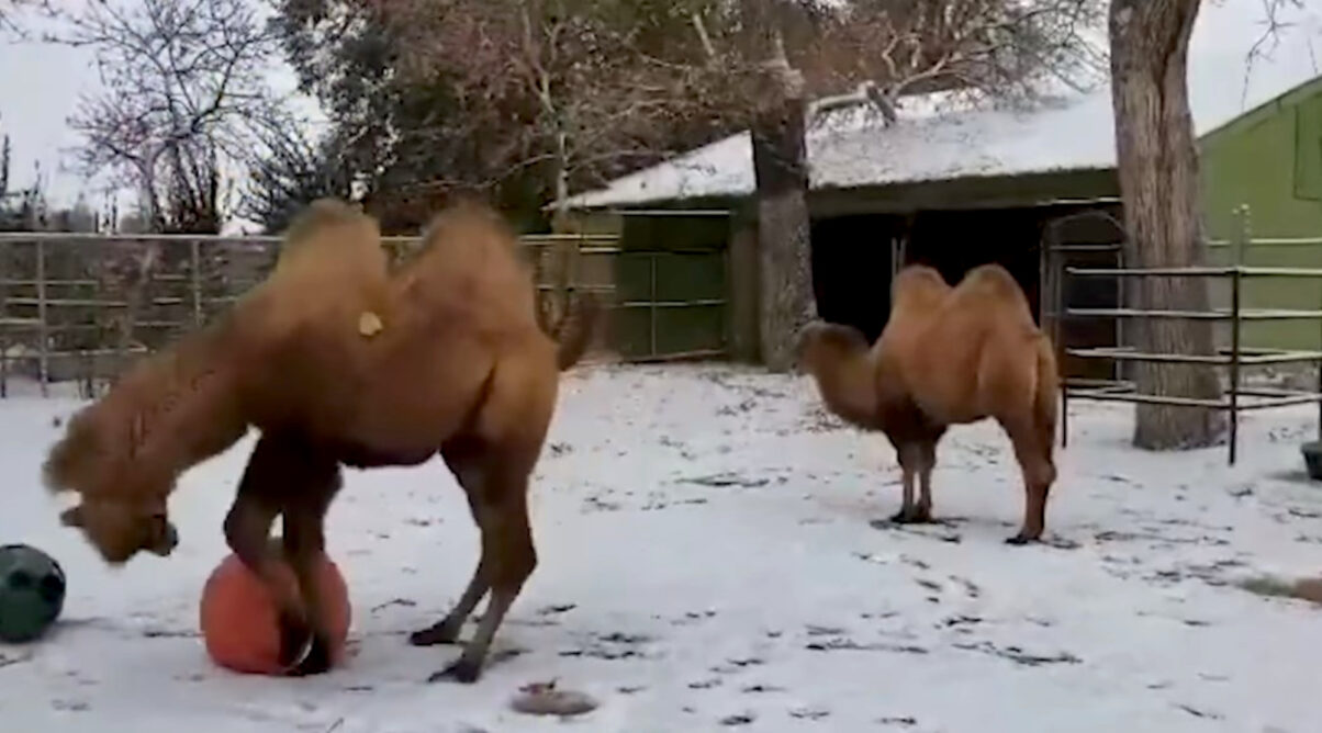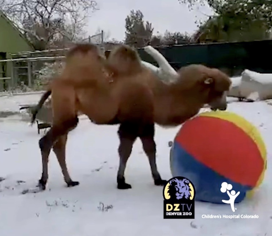 DENVER—Two baby Bactrian camels enjoyed their first snow with a game of soccer at a Colorado zoo.