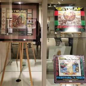 Fellow Hampton Art Lovers Co-Founder, Christopher Norwood located many valuable pieces which are now on display. According to Neverson, “The library had a wonderful collection of posters. There were three series of posters which stood out to me the most: the Sistrunk Festival posters which featured art by local Artists like Gene Tinnie and George Gadson, and showcased several years of festivals in Sistrunk, the Charles Mills posters, and the African travel Posters. Exhibition posters are often made in editions of a few hundred, yet grow rarer over time as people do not realize their value.” Artist/Sculptor, George Gadson was present for the exhibition.