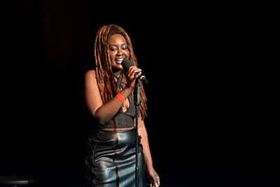 As a comedic Host, Chris Priester truly creates a fun-loving atmosphere where people feel at ease and welcomed as they listen to raunchy and potentially uncomfortable— artistic pieces. His Hosting abilities coupled with his range in comedic acts, provide the program with additional comedic relief to ease the mind, body, and soul of the erotic artistic pieces delivered prior. The element of comedy creates the perfect atmosphere.