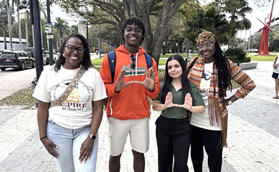 College Tour Experience: Students from ASPIRE Academy visit the campus of Florida International University as part of a South Florida college tour designed to expose them to higher education opportunities and campus life.