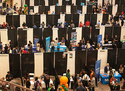 “It’s one of the largest career expos in a long time. It went very well. Employers came; students turned out in great numbers; there was a lot of energy,” Means said. “We had 50 organizations that scheduled next day interviews with students. It shows that employers are serious about hiring our students.”