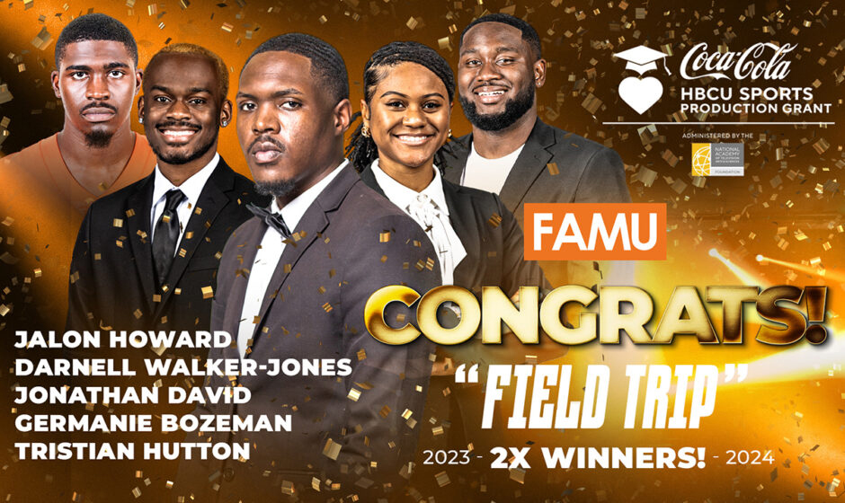 FAMU students Jonathan David, Darnell Walker, Germanie Bozeman, Tristian Hutton, and Jalon Howard received the 2024 Coca-Cola HBCU Sports Production grant for the seven-minute documentary “Field Trip,” which portrays the late Pro Football Hall of Famer and FAMU alum Ken Riley.