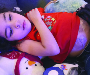 She has a nebulizer â a machine with a mask that takes liquid medication and turns it to mist for easy breathing absorption. She also has a specialized car seat; without it, she would stop breathing on extended drives. Additionally, she has daily antibiotics, a continuous positive airway pressure (CPAP) ma- chine and a private duty nurse.