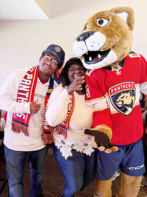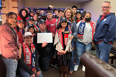 A group of 20 Littles and their Bigs were treated to a Panthers VIP experience complete with complimentary tickets to a game at FLA Live Arena in Sunrise, Zamboni rides, photos with Stanley C. Panther and Viktor E. Rat, and a shout out on the jumbotron.