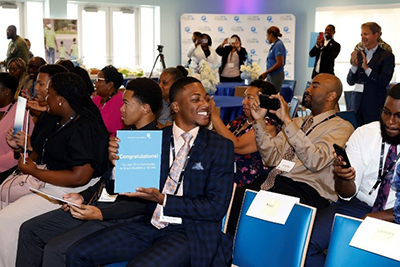Samuel Dorcelus-Cetoute, one of this year’s recipients of the NextEra Energy Scholarship for Black Students in SECME is surprised with a $20,000 scholarship on July 8, 2023. All eight students and their families, who are in on the surprise, were presented with a $20,000 college scholarship check and university swag inside of FPL’s Manatee Lagoon.