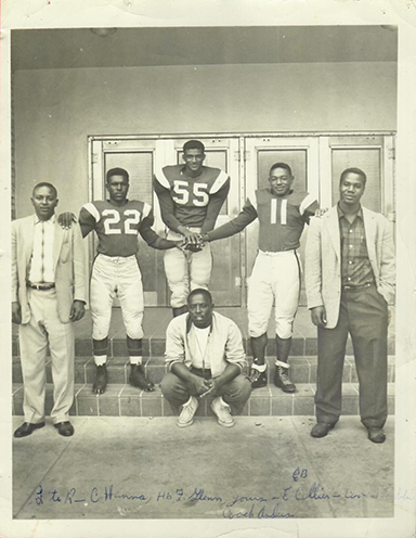 Rewrote the Mays High record books with many milestones, including school single-sea-son records for most points scored and most TDs scored, 138 and 22, respectively. He set school records for a single season in rushing with 1,519 yards in 1957. The record was subsequently broken by Cecil Young (1,565 two years later). He also set the school record for touchdowns in a single season with 22. His ‘57 Rams went 9-1 and outscored opponents 313-37 while taking the conference runner-up. He gained more than 200 yards rushing in a game against Attucks. He rushed over 100 yards in nine of ten starts, and scored four touchdowns in one game. He went on to become an All-Conference player and was selected to the All-State team. Despite incomplete newspaper records from the era, it has been determined he scored more than 240 points during his career. He was also the team’s leading rusher for 2 out of 3 seasons with the Rams. As a junior he rushed for 833 yards and scored 11 touchdowns. All of his hard work and great ability came to a fitting climax his senior year when he was voted the team’s Most Valuable Player of the Year.