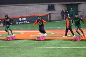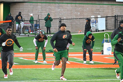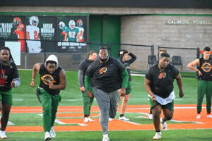 Florida A&M Rattlers football team has ‘4th Quarter’ drills on Ken Riley Field at Bragg Memorial Stadium in Tallahassee, Florida, Tuesday, February 20, 2024.
